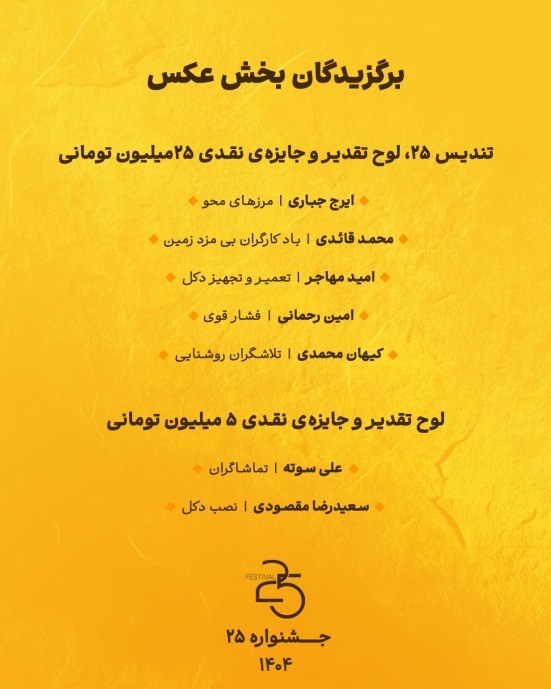در جهانی که منابع طبیعی در معرض تهدیدهای روزافزونند، جشنوارهی «۲۵» میکوشد با اتکا به زبان هنر، جامعه را به اندازه نگهداشتن و بازاندیشی در الگوهای مصرف دعوت کند. از عکس و فیلم گرفته تا آثار مستند، ریلز، روایتهای کودکونوجوان، ایدههای چندرسانهای، پرفورمنس، مقاله، تئاتر و دیگر قالبهای خلاقانه، همه در این جشنواره جای دارند؛ به شرط آنکه دغدغهی مسئولیتپذیری و آگاهیزیستی در آنها جاری باشد.