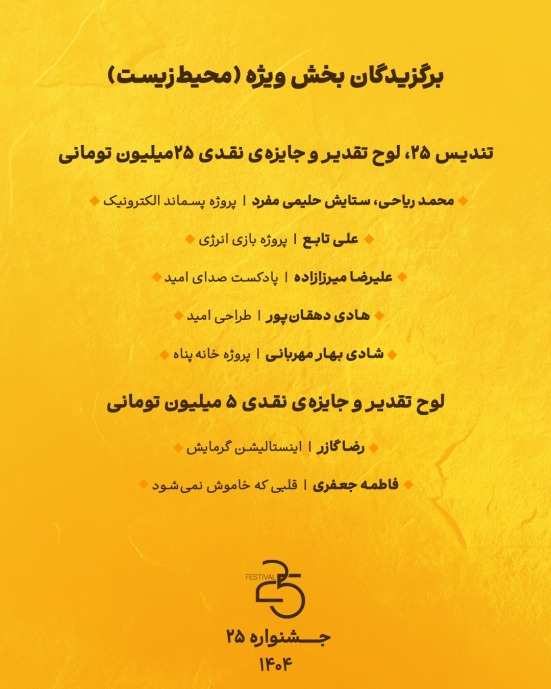 «۲۵» فقط یک رقابت هنری نیست؛ صداییست برای بازخوانی سبک زندگی امروز، تلاشیست برای مشارکت فرهنگی در حفظ آینده، و جنبشیست در جهت ترویج نگاه معاصر به انرژی؛ «...که اندازه نکوست.»